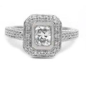 Mid-Century Bezel-Set Set Radiant Cut Diamond Engagement Ring | 14K White Gold | 1980s