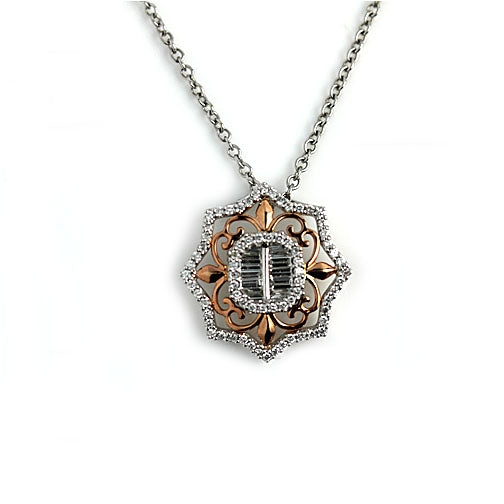 Baguette and Round Diamond Rose Gold Necklace