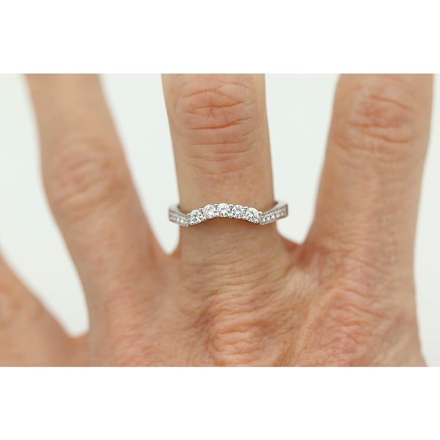 .30 Ct Diamond Contoured Round Wedding Band in 18K White Gold