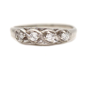 Antique 5 Stone 14 Kt White Gold Diamond Stacking Wedding Ring