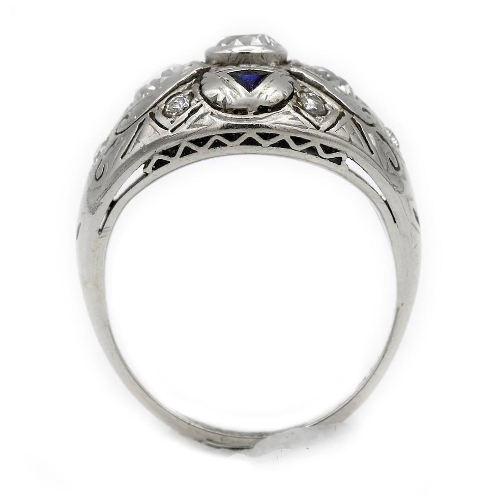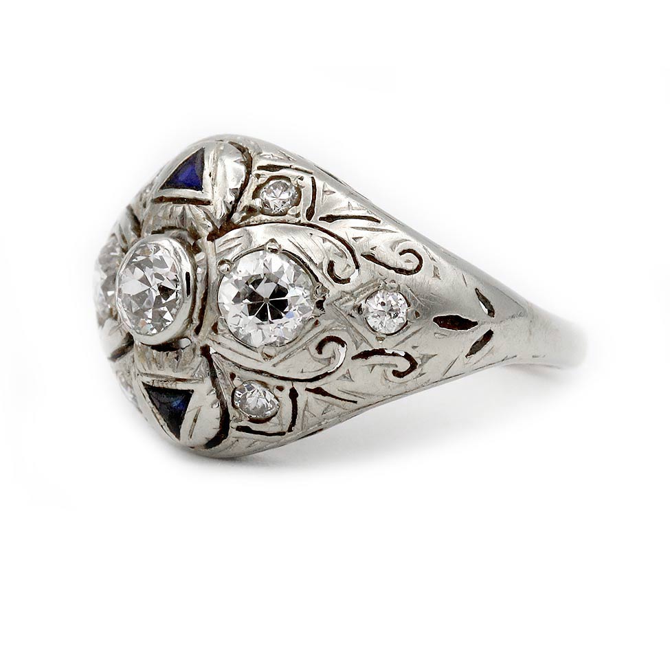 Unique Art Deco 1.00 CTW Diamond & Sapphire Dome Antique Engagement Ring