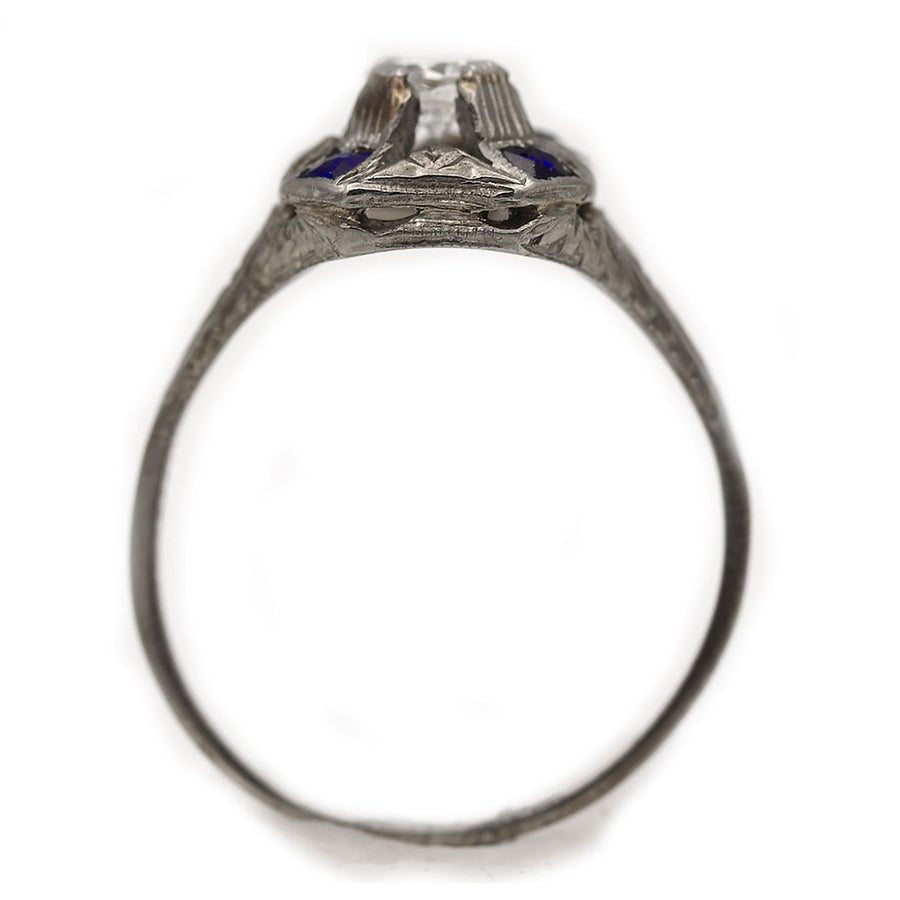 Art Deco .50 CTW European Cut Diamond Antique Engagement Ring with Sapphire Side Stones