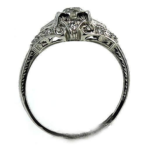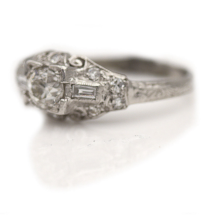 Art Deco .86 CTW Old Mine Cut Diamond Baguette Vintage Engagement Ring