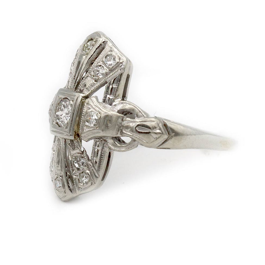 Antique .40 CTW Old European Cut Diamond Navette Art Deco Dinner Ring