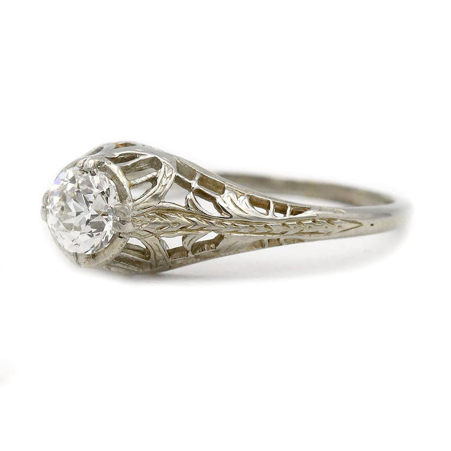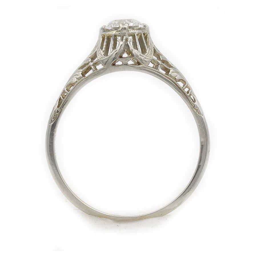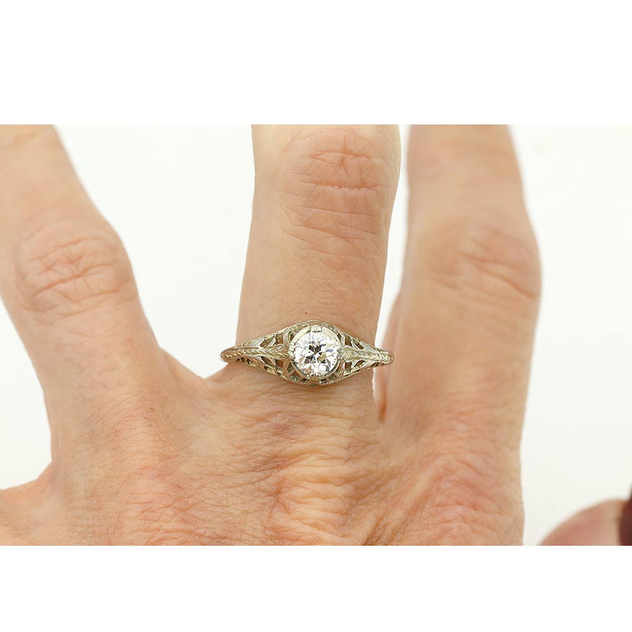 Antique .55 Ct Old European Cut Diamond Solitaire Art Deco Engagement Ring in 18 Karat White Gold