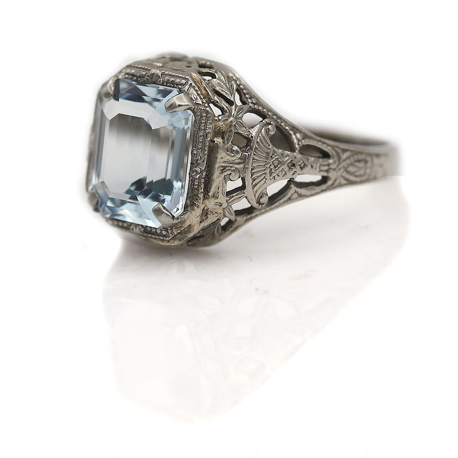 • Authentic Art Deco Aqua Engagement Ring