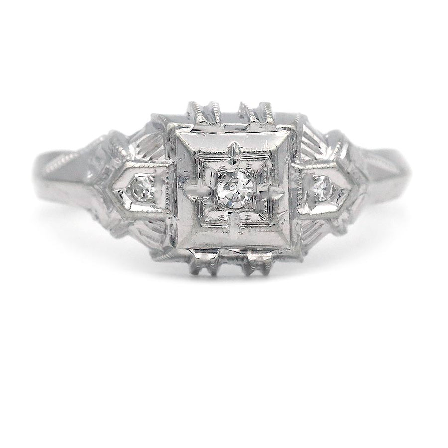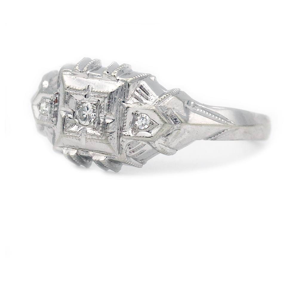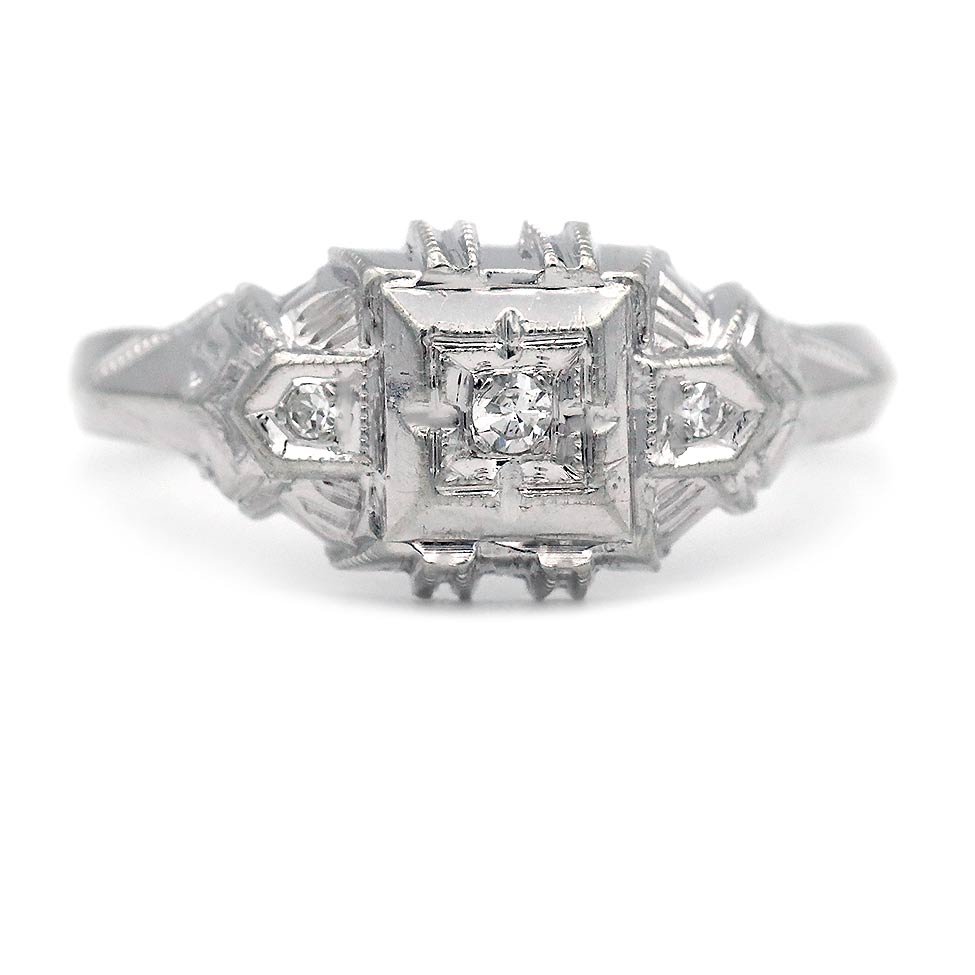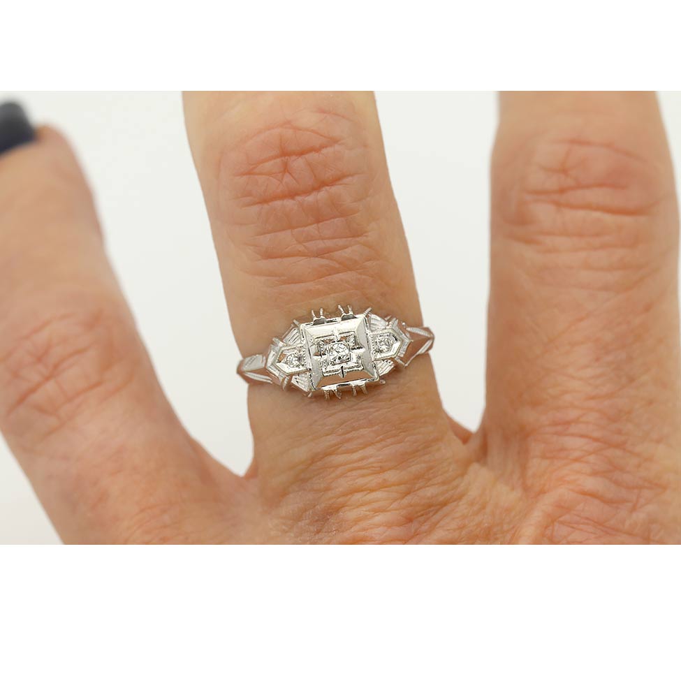 Art Deco Low Profile Diamond Engagement Ring in White Gold | 1930s