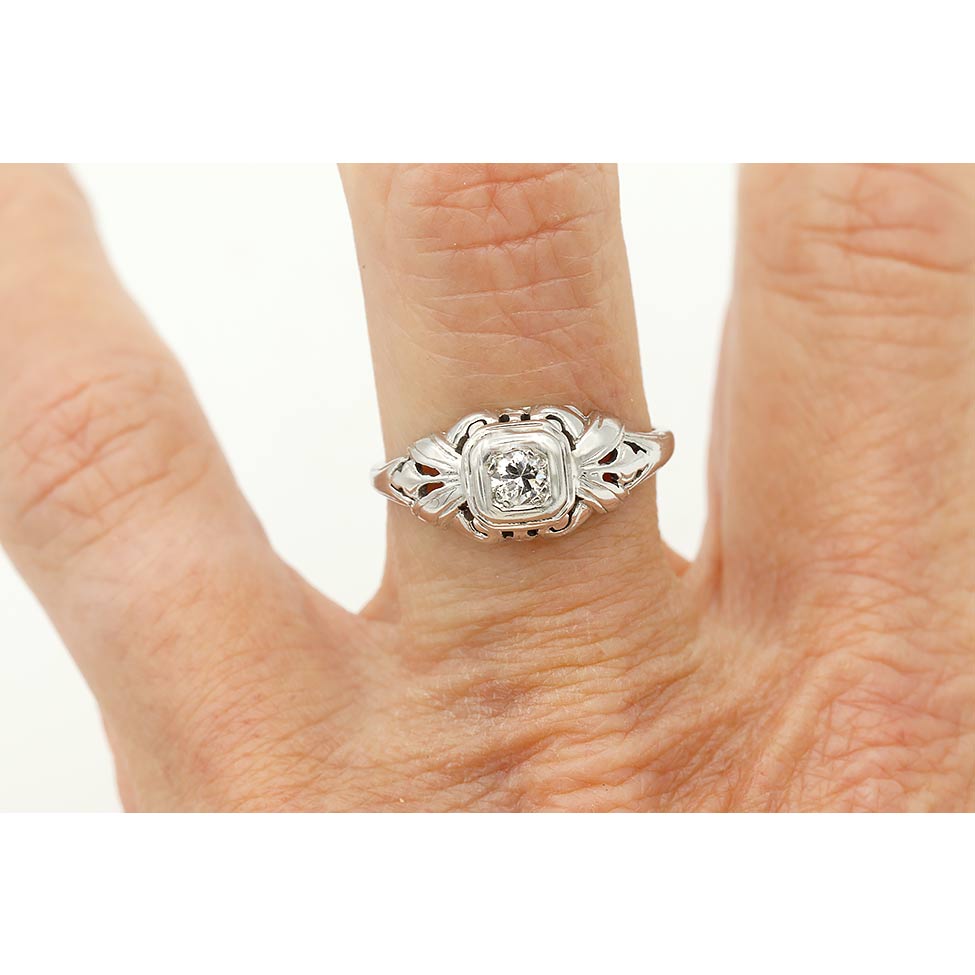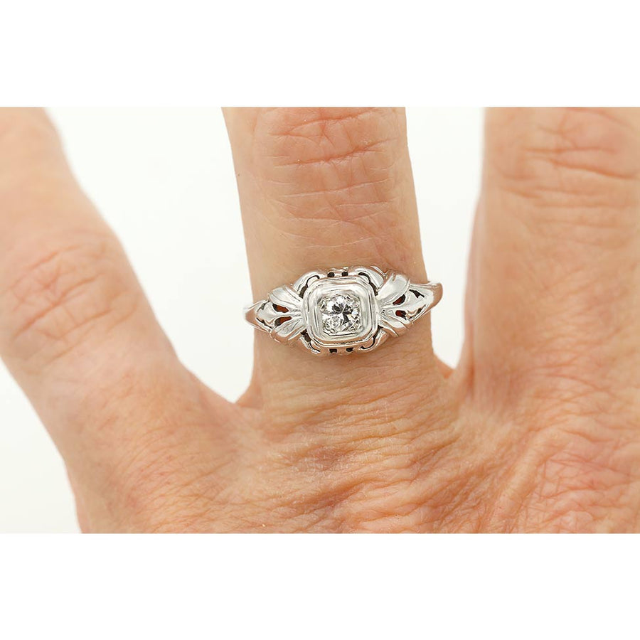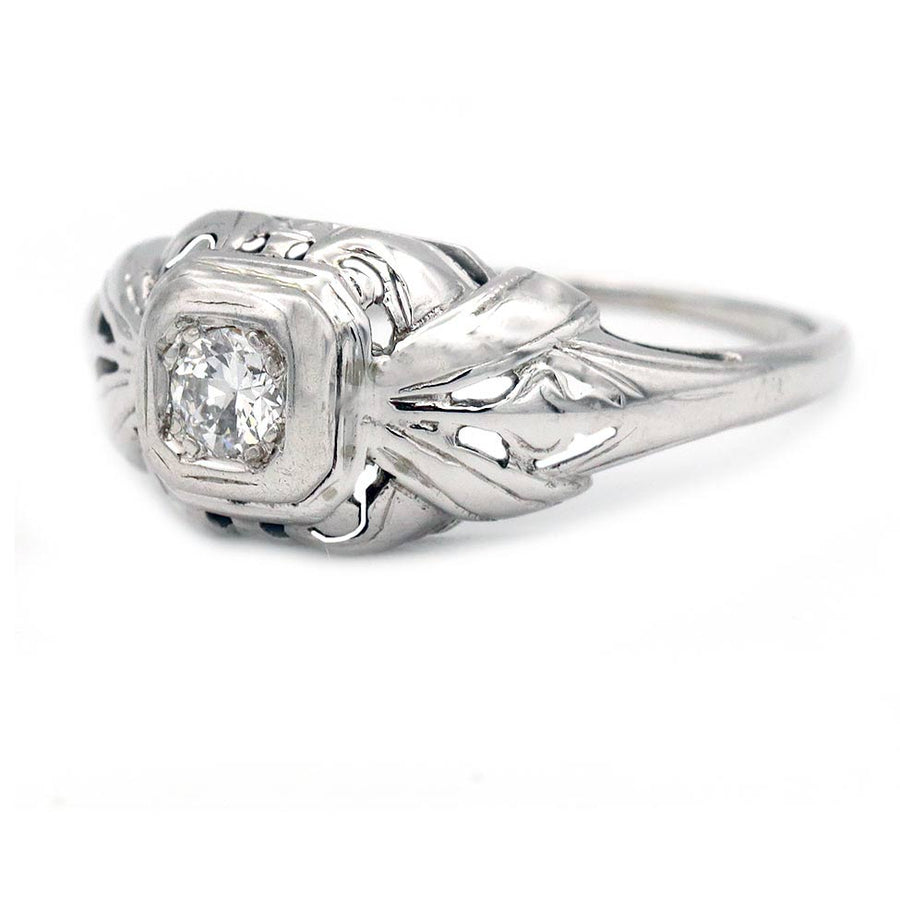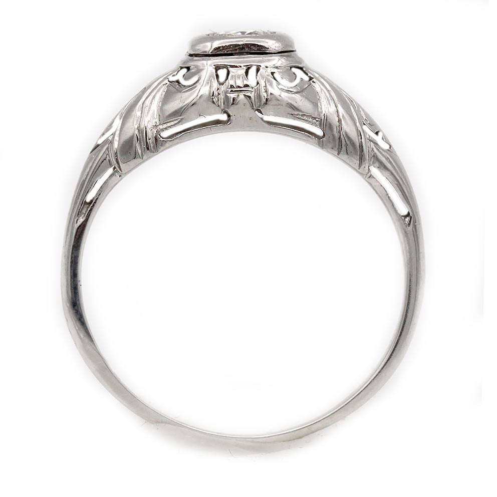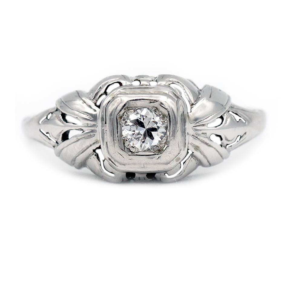 Art Deco .20 Ct Old European Square Engagement Ring in 14K White Gold | Circa 1920s