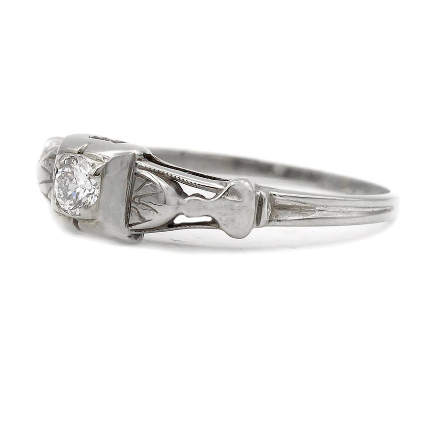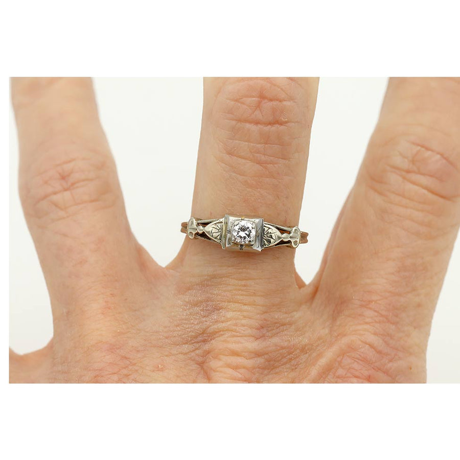 Art Deco .20 Ct Old European Cut Diamond Engagement Ring in 14 Karat White Gold