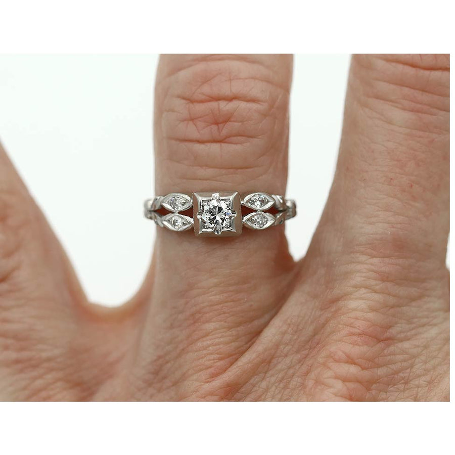 Art Deco .28 CTW Transitional Cut Diamond Navette Vintage Engagement Ring