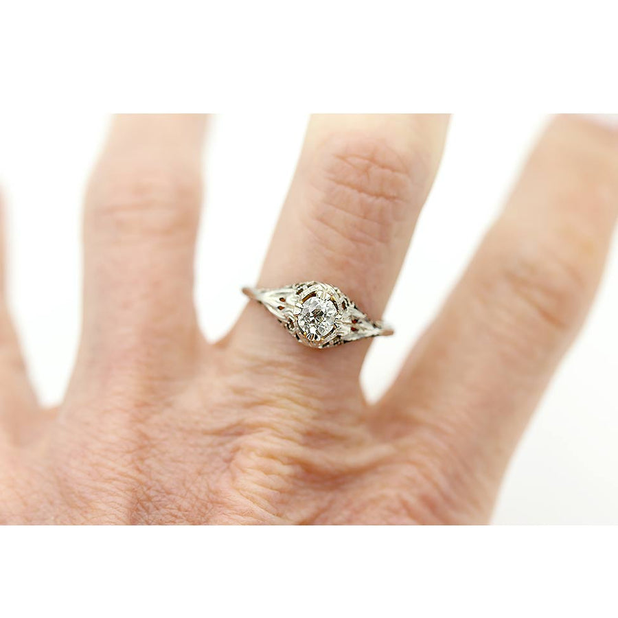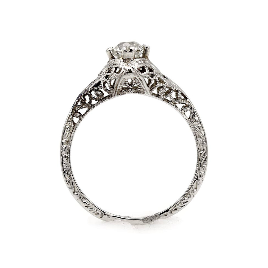 Art Deco Old Mine Cut Diamond Engagement Ring | 18K White Gold | 1930s