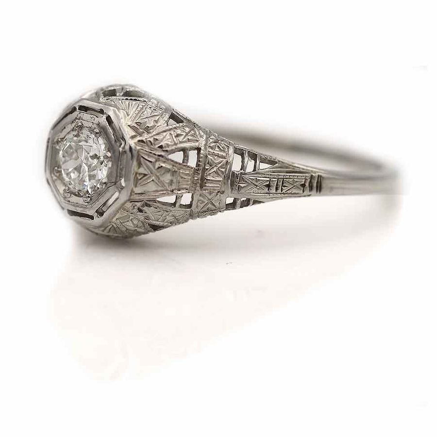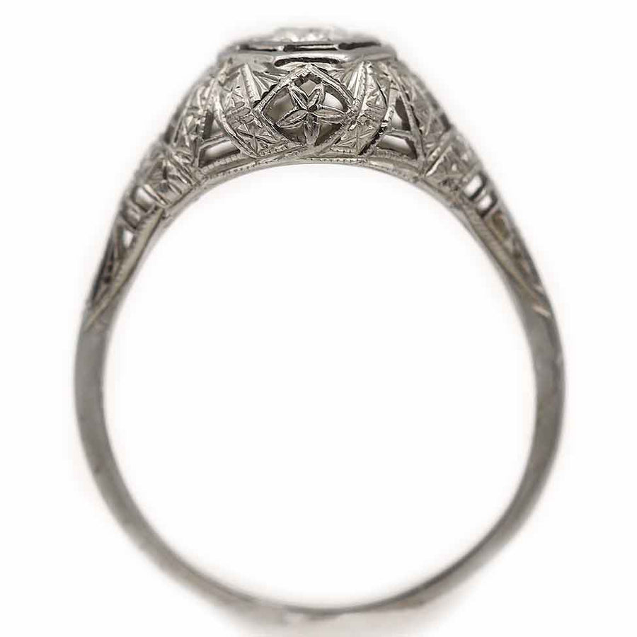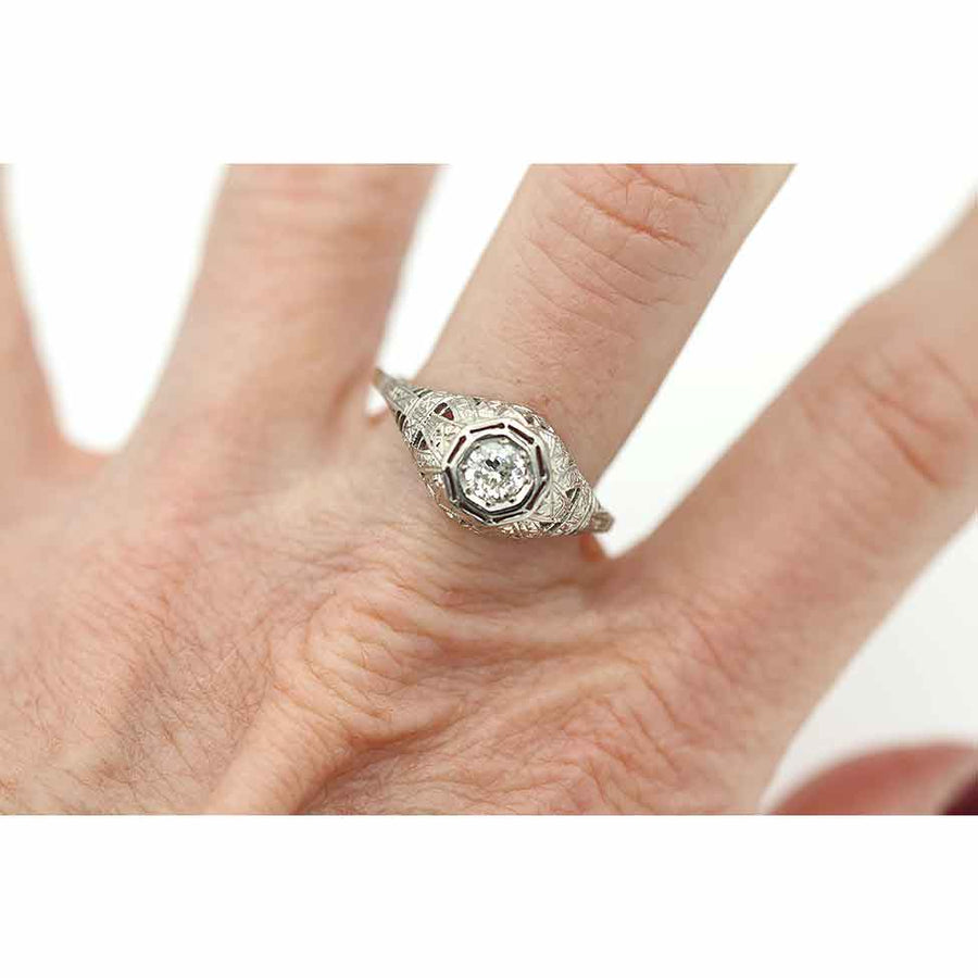 Art Deco .35 CTW Old European Cut Diamond Filigree Solitaire Vintage Engagement Ring