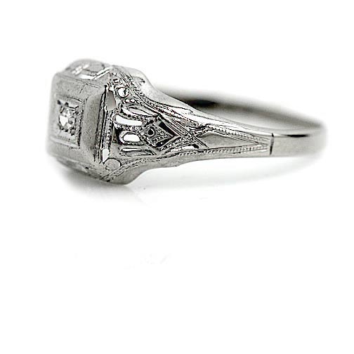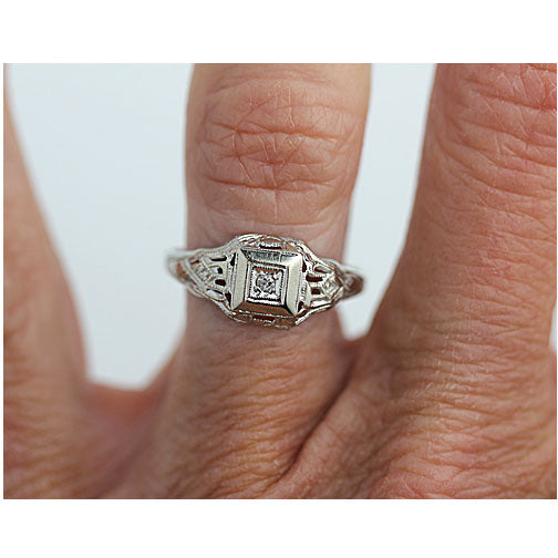 Antique .05ctw Single Cut Diamond - 14k White Gold Art Deco Ring