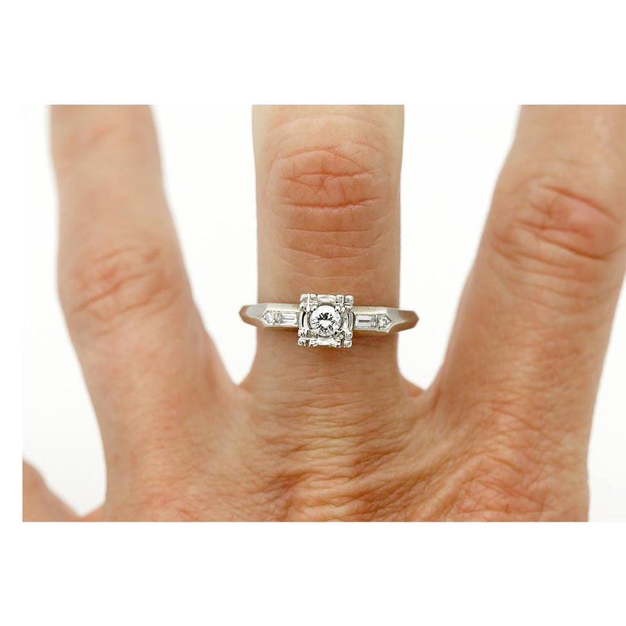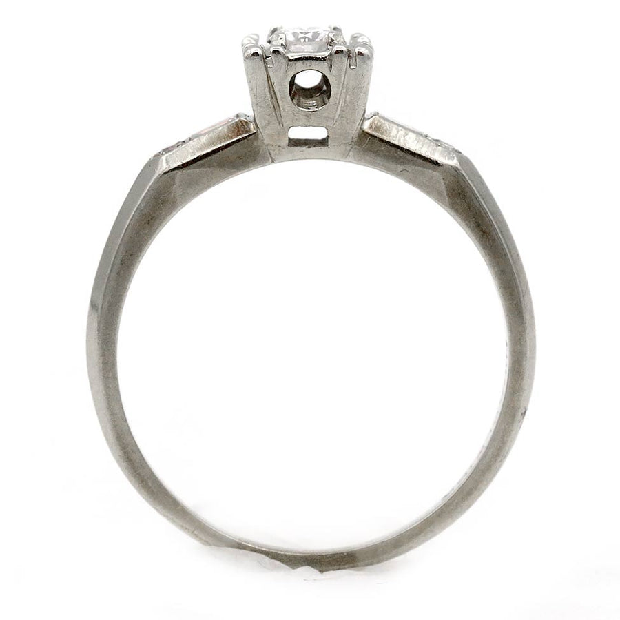 Mid-Century .20 Ct Illusion Set Diamond Vintage Engagement Ring with Baguettes in 18K White Gold