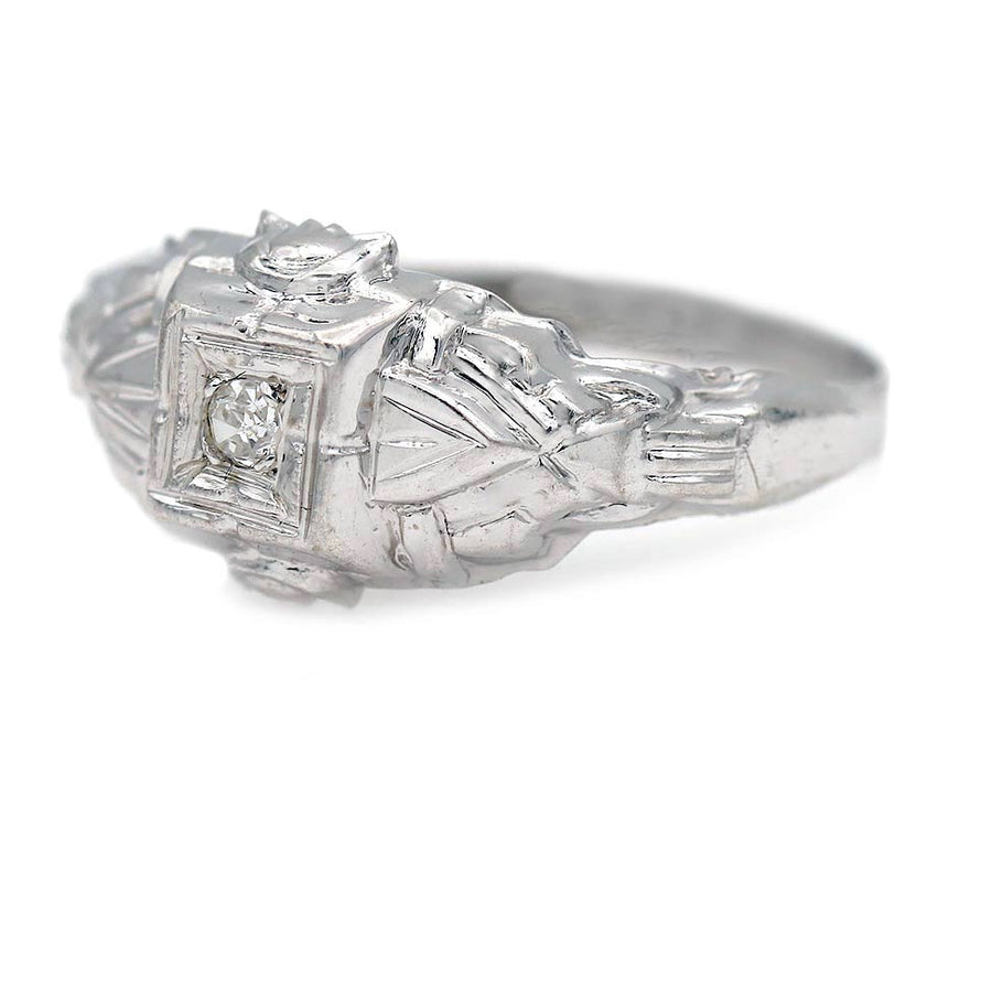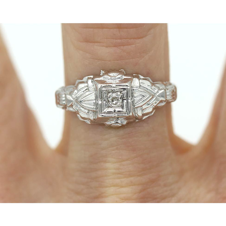 Petite Art Deco .05 Ct Vintage Diamond Engagement Ring Filigree Engravings