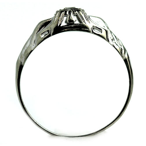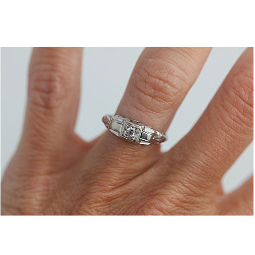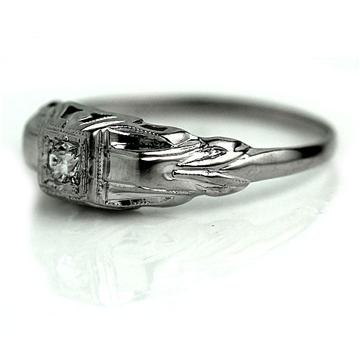 Petite Antique Diamond Engagement Ring .08 CTW Square Milgrain 14K White Gold Circa 1940s