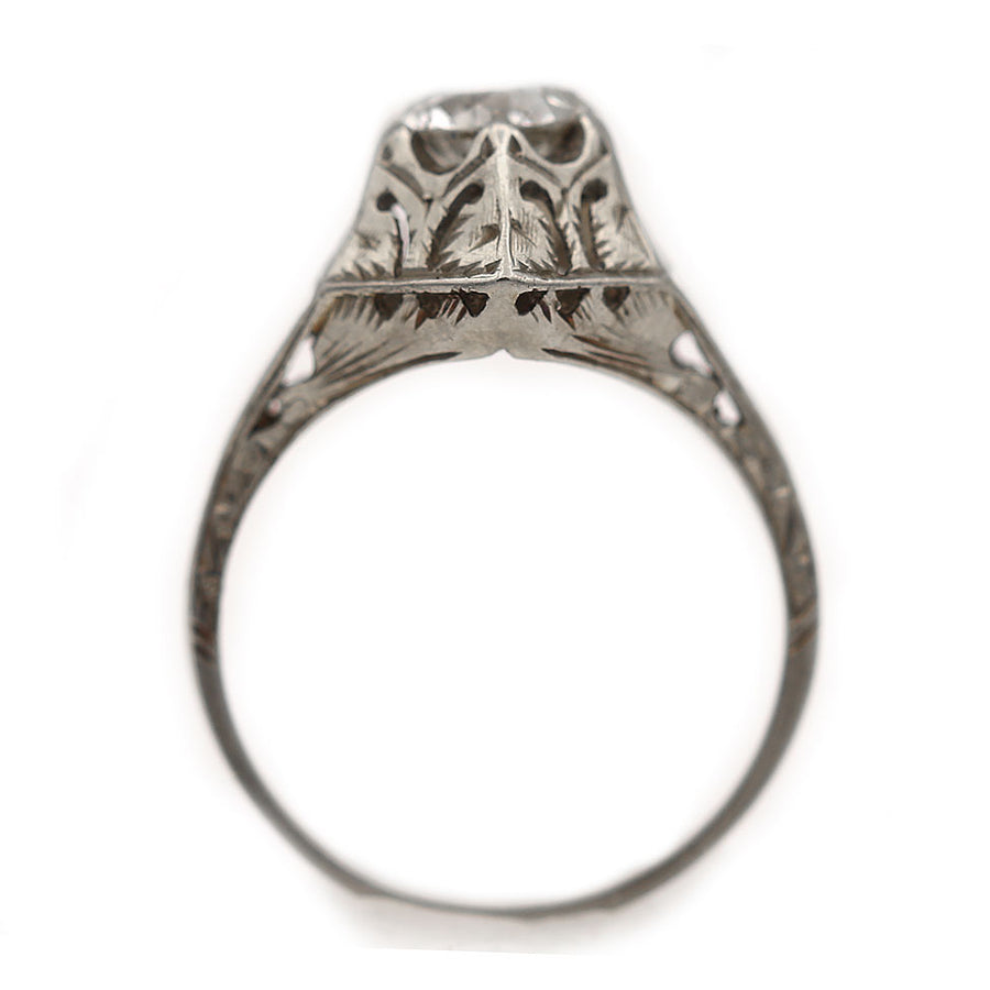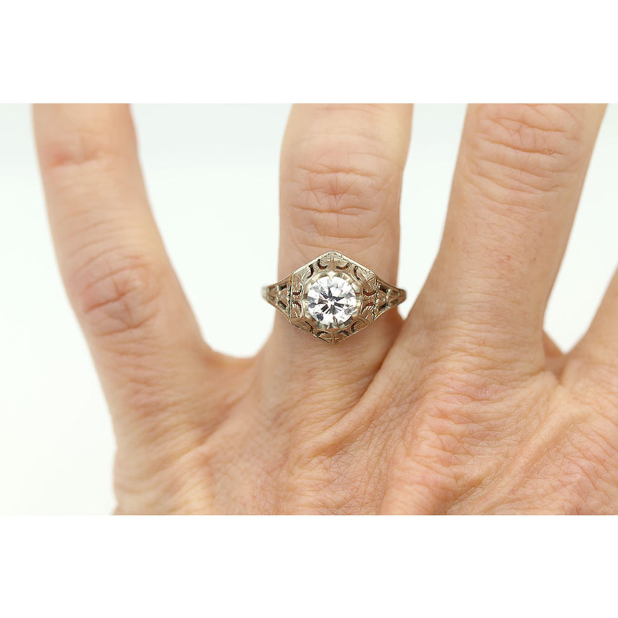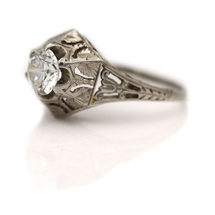 Vintage .90 Ct Old European Cut Diamond Art Deco Engagement Ring in 18K White Gold