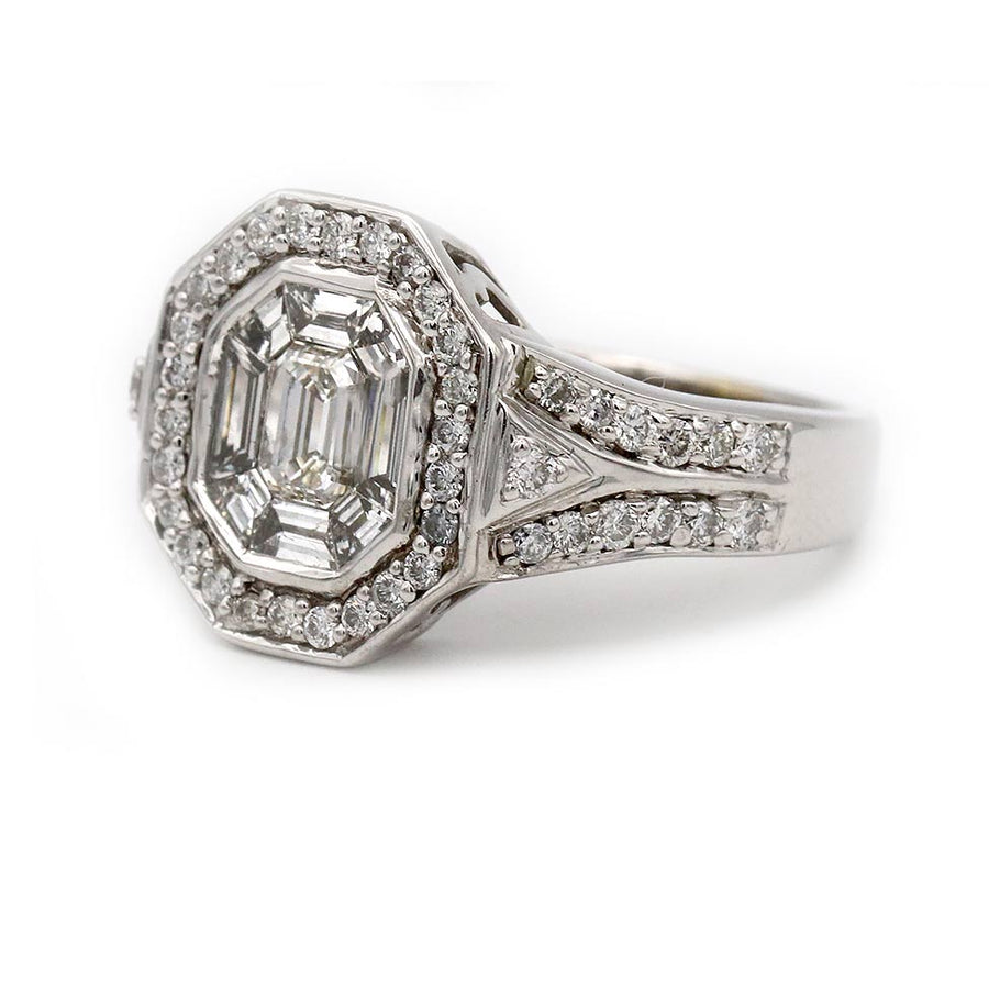 Vintage Illusion Set Emerald Cut Diamond Engagement Ring | 14K White Gold | 1980s