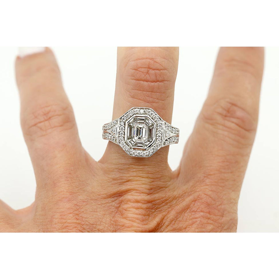 • .30 Ct Illusion-Set Emerald Cut Diamond (F Color, VS2 Clarity)