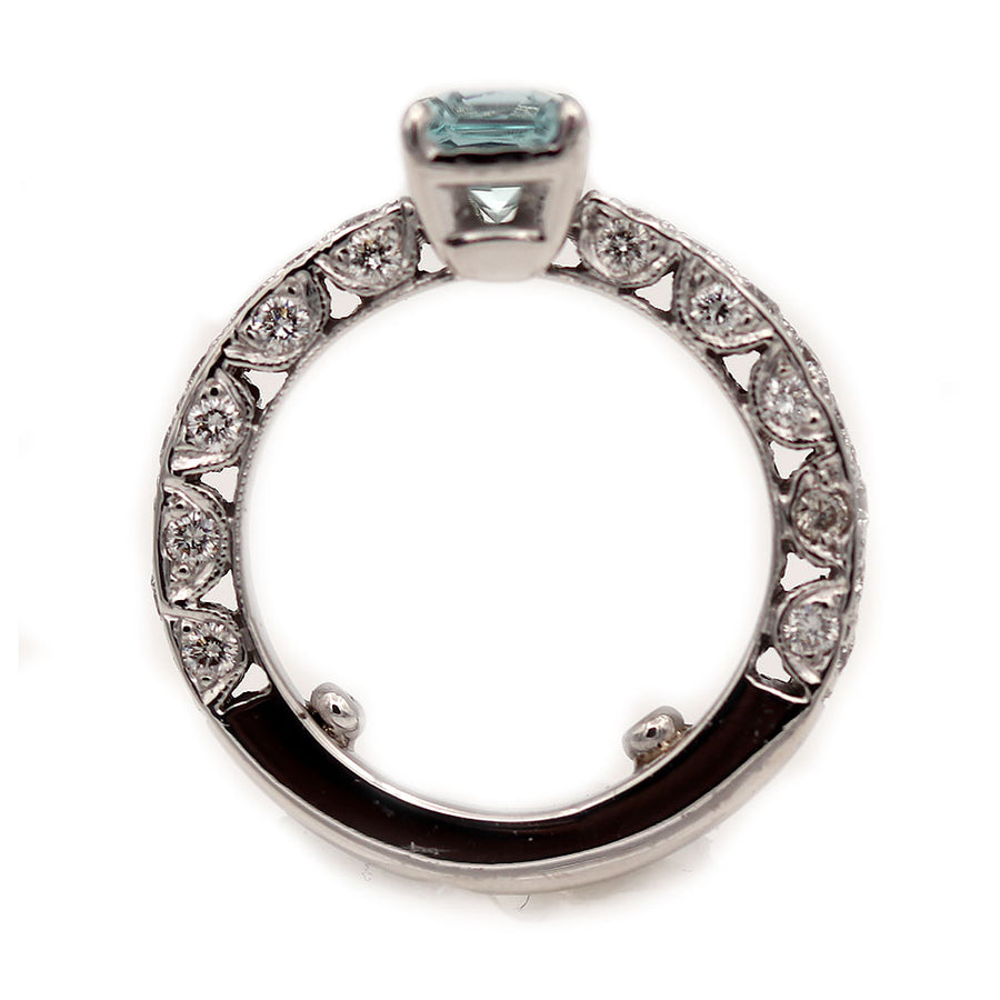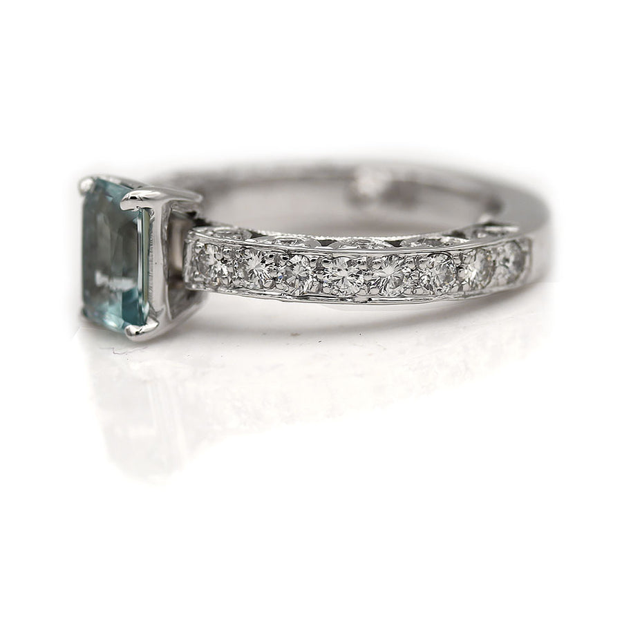 Vintage Emerald Cut Aquamarine and Diamond Engagement Ring .90 Ct