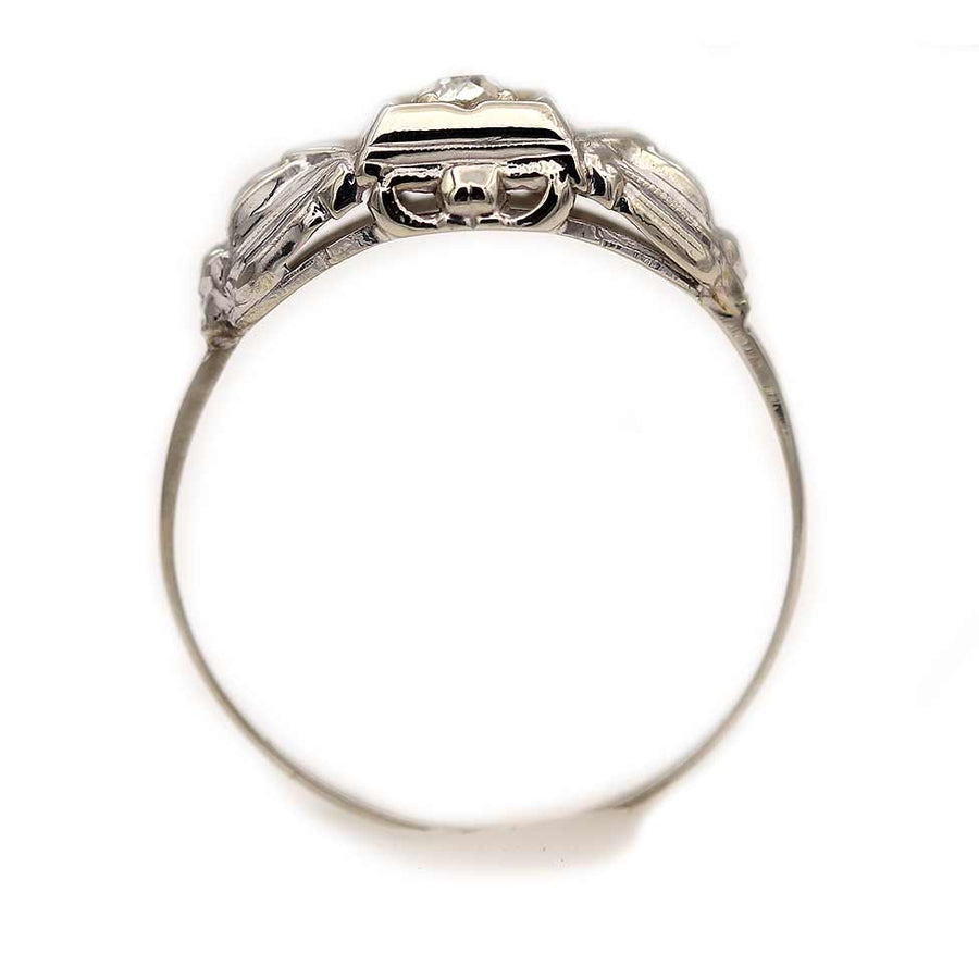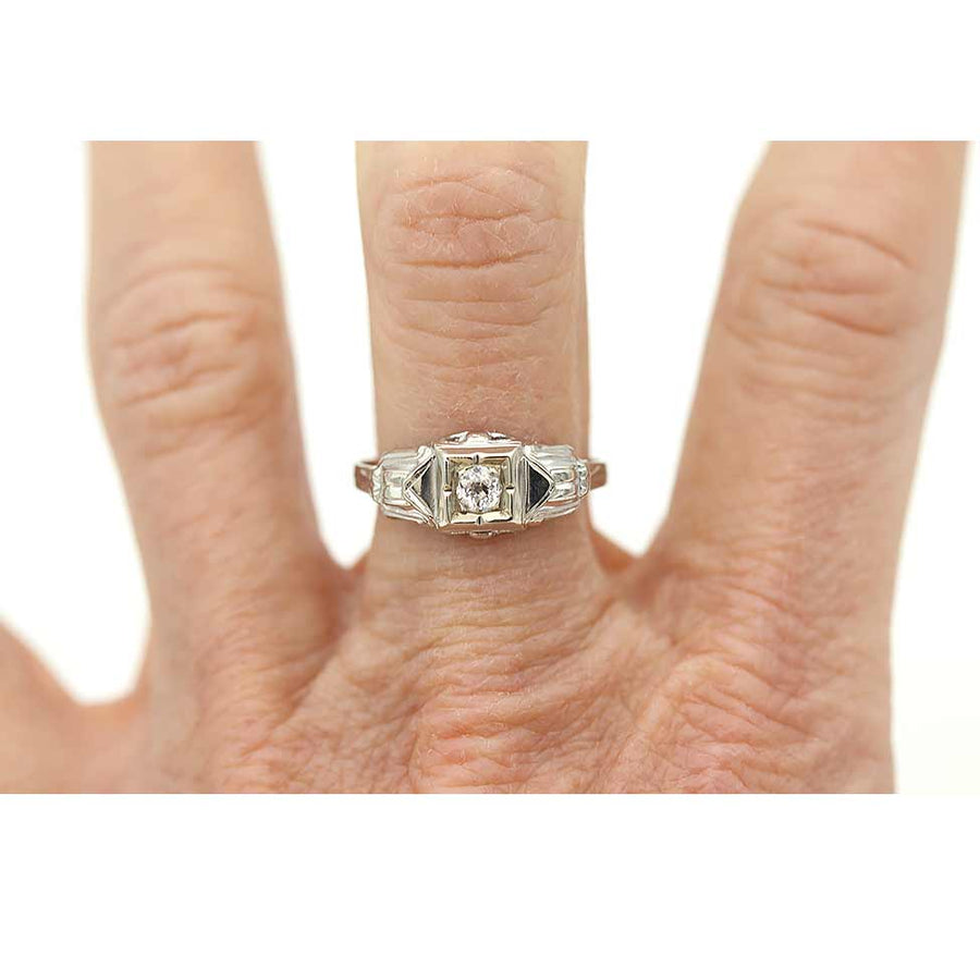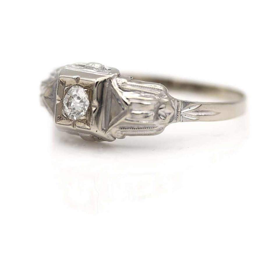 Vintage .20ct Old Mine Cut Diamond 14K White Gold Geometric Solitaire Ring