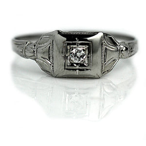 Antique .10 CTW Hand Crafted 14 Karat White Gold Art Deco Solitaire Engagement Ring