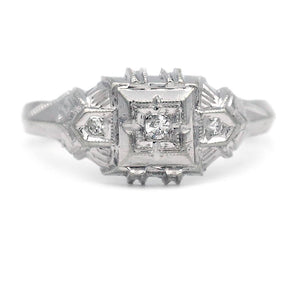 Antique .28 CTW Geometric Square Art Deco Engagement Ring with Side Diamonds