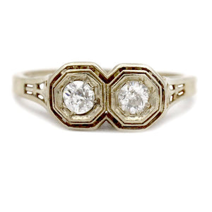 Art Deco Two-Stone Old Mine Cut Diamond Engagement Ring with Heart Motif | Circa 1920s