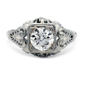 Vintage .70 CTW Old European Cut 18 Karat White Gold Filigree Engagement Ring