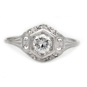 Art Deco .30 CTW Hexagonal Old European Cut Diamond Vintage Engagement Ring