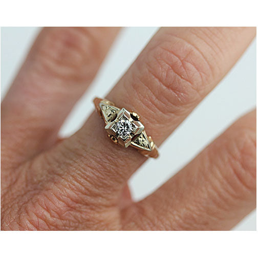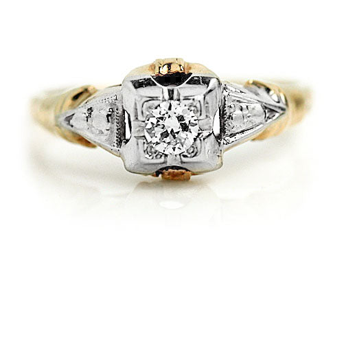 Mid-Century .20 CTW 1950s Two Tone European Cut Vintage Diamond Engagement Ring