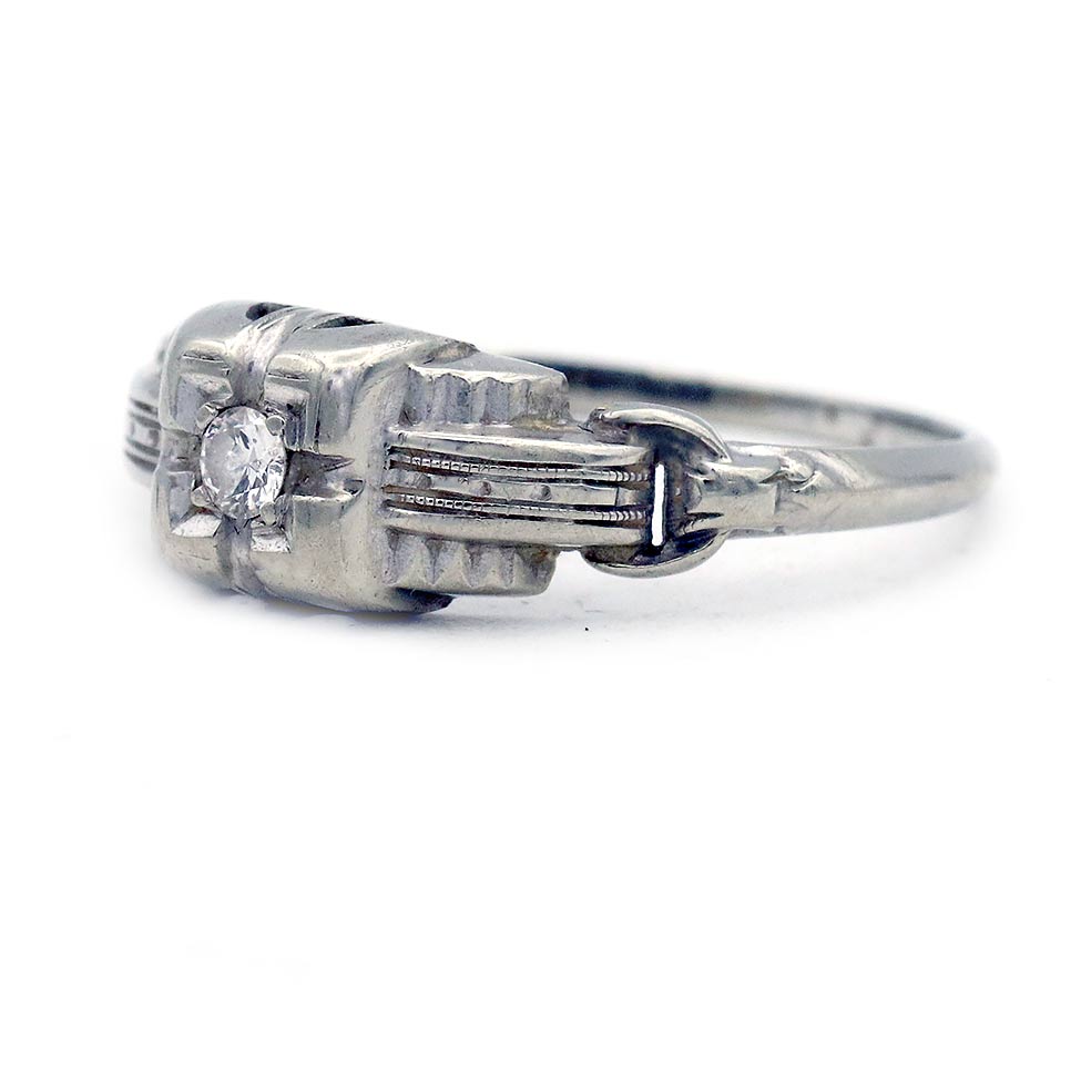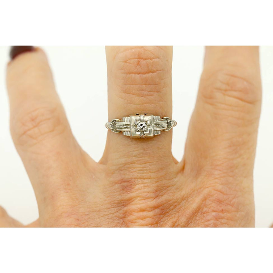 Antique .08 Ct Petite Art Deco Diamond Ring in 18 Kt White Gold with Filigree