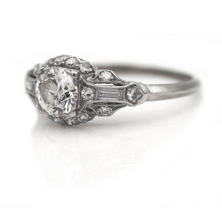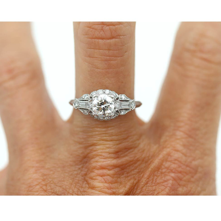 Antique 1.09 CTW Old European Cut Diamond Platinum Art Deco Engagement Ring