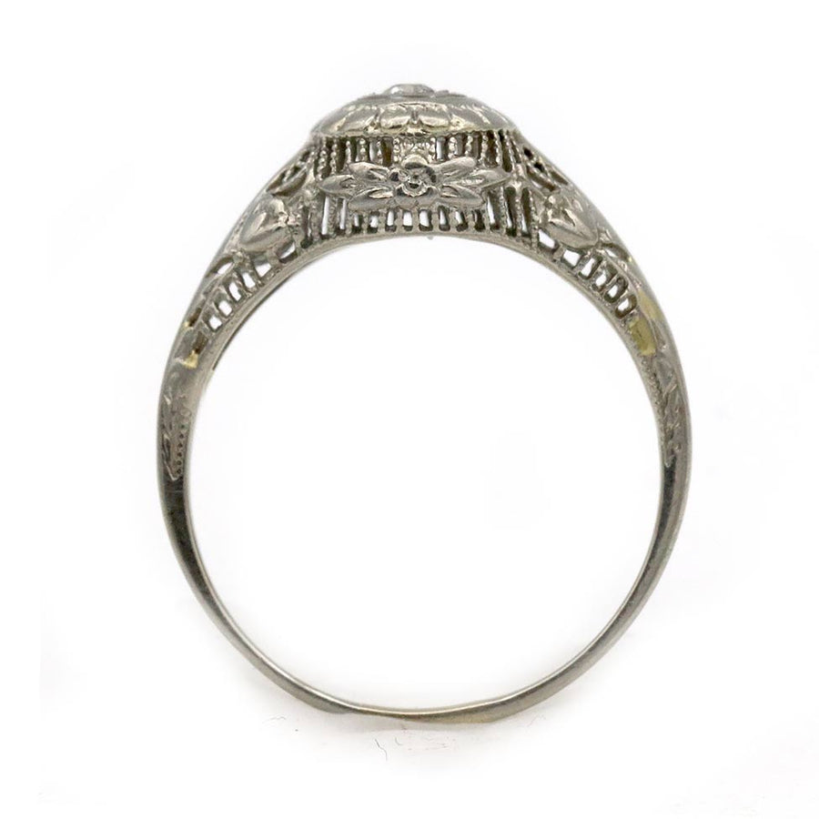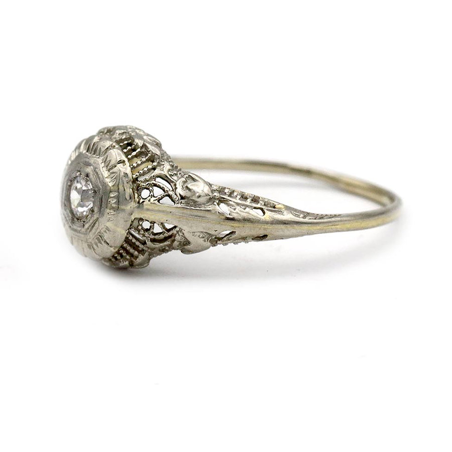 Antique .15 CTW Floral White Gold Vintage Diamond Engagement Ring