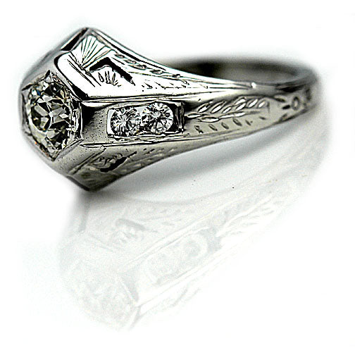 Antique .58 CTW Old Mine Cut Diamond Filigree Mid-Century Engagement Ring