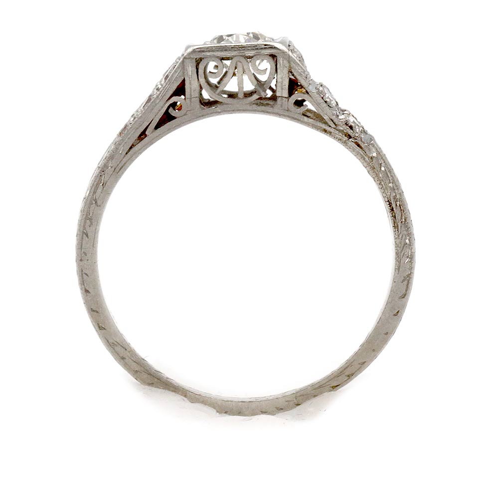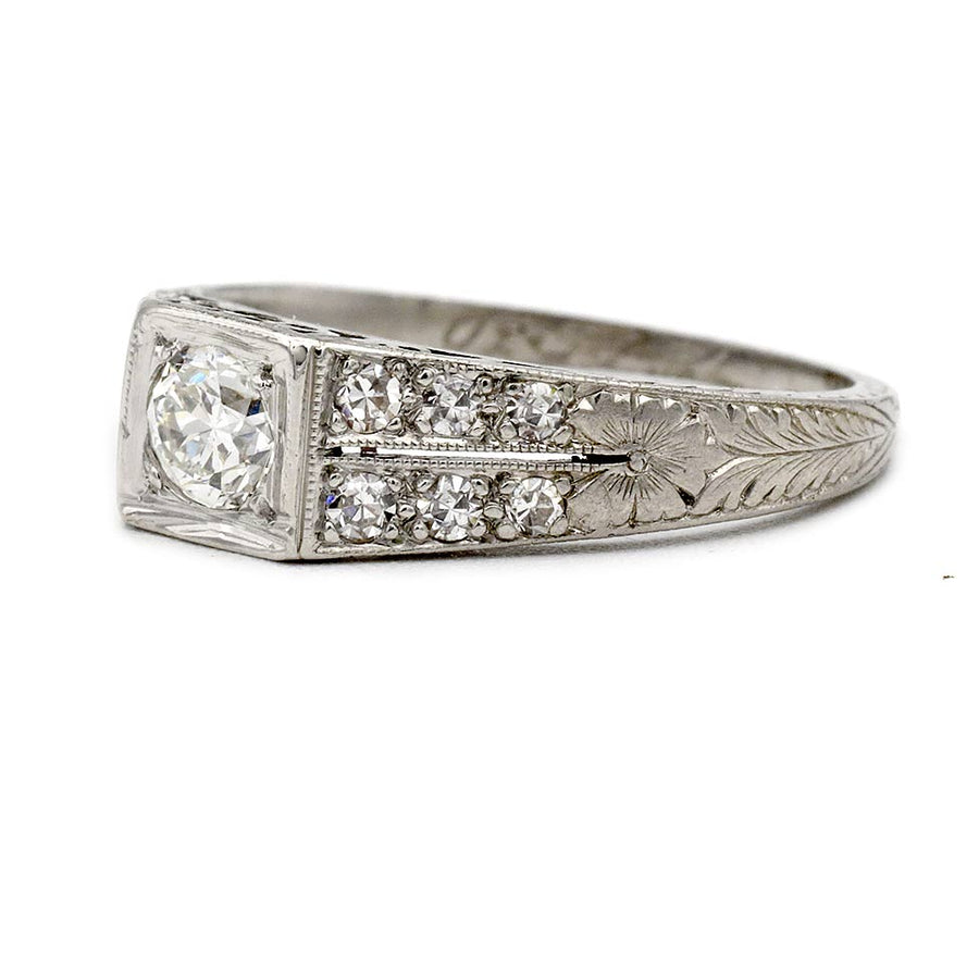 Antique .59 CTW Old European Cut Diamond Art Deco Engagement Ring Floral Engravings