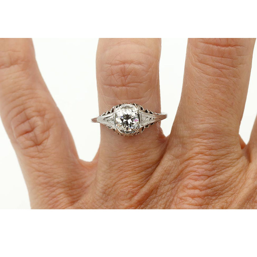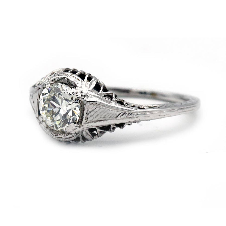 Antique Art Deco Diamond Solitaire Engagement Ring with Filigree | 1930s