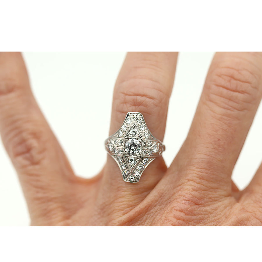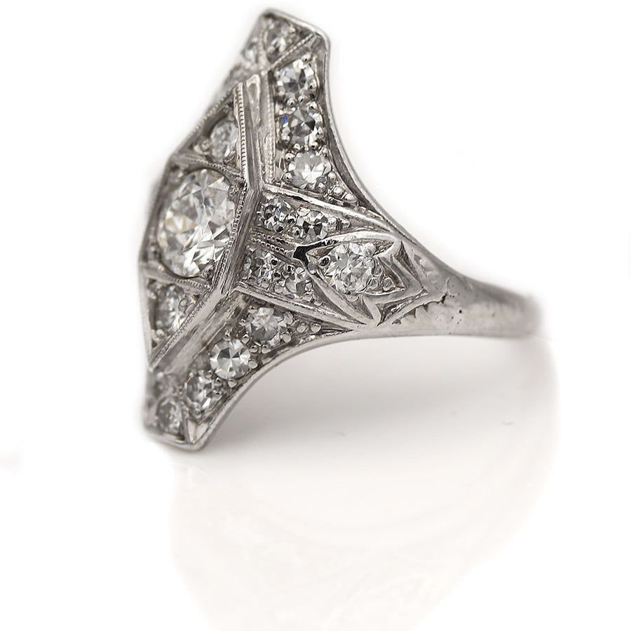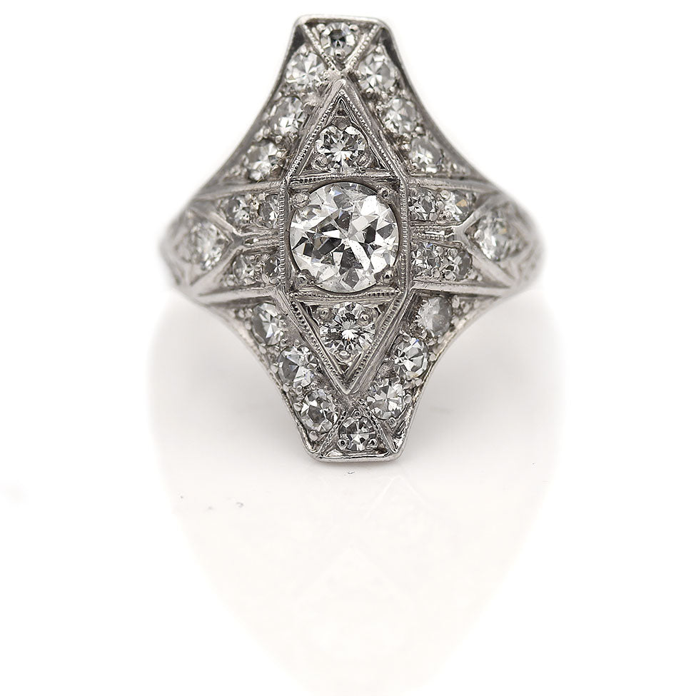Art Deco 1.05 CTW Old European Cut Diamond North South Diamond Vintage Cocktail Ring