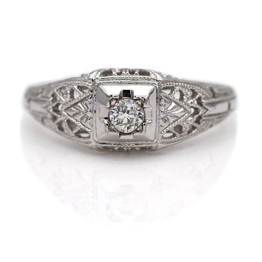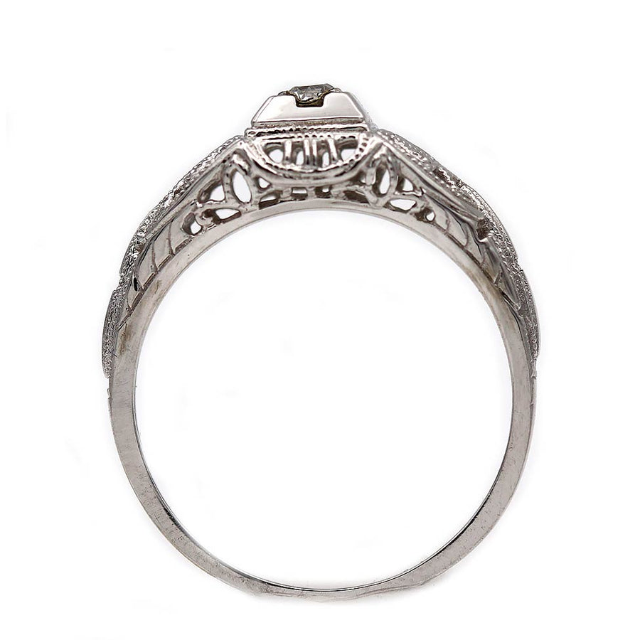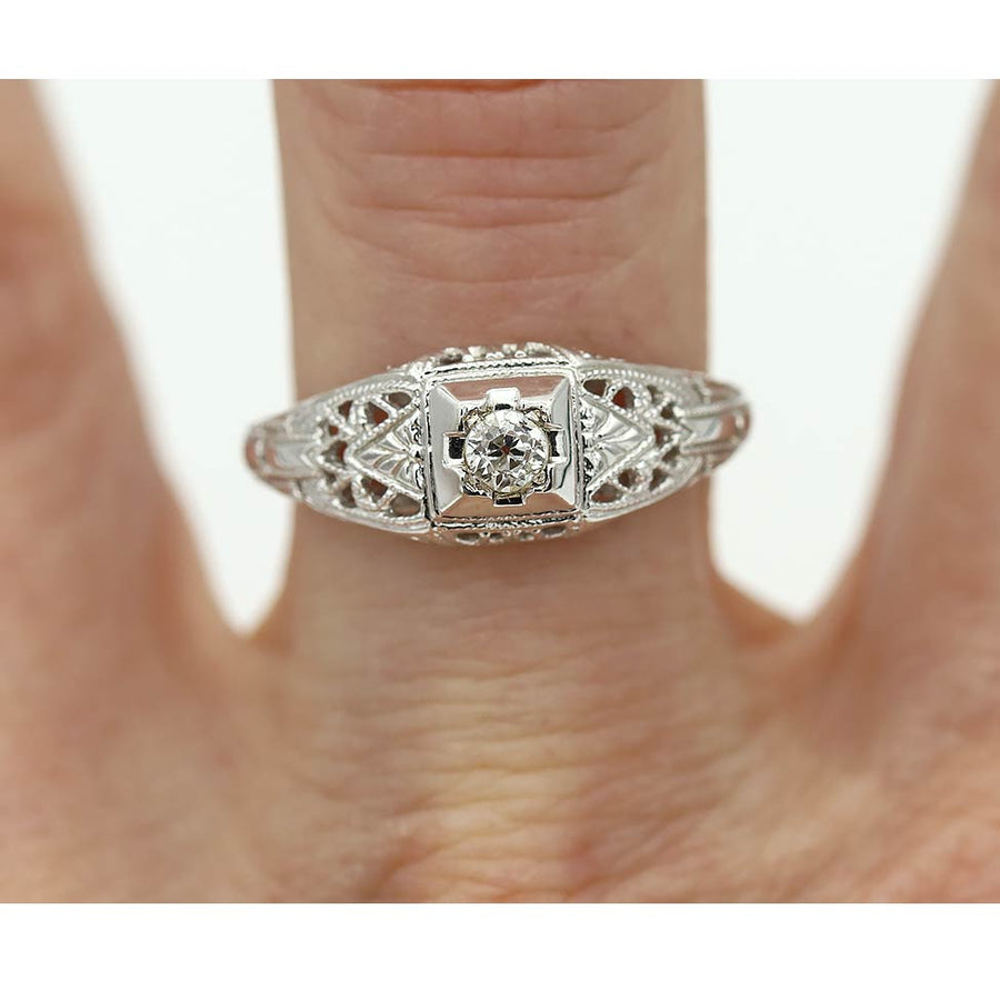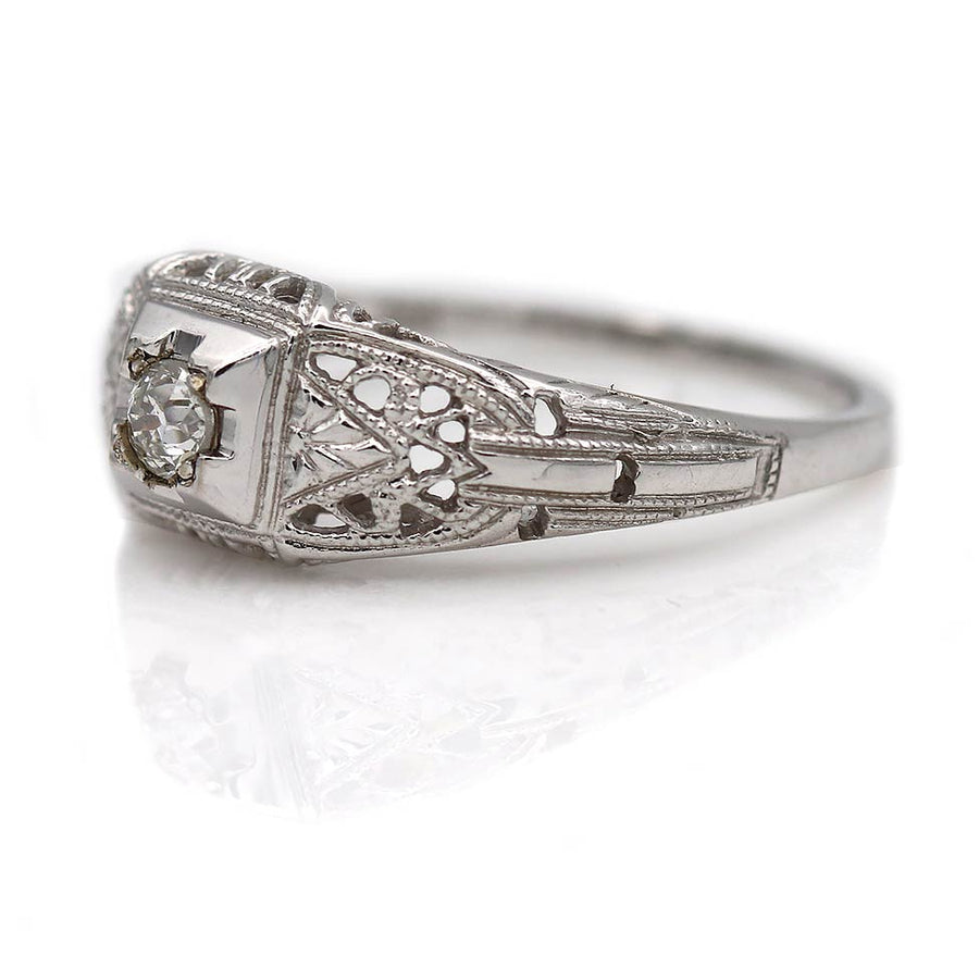 Art Deco .15 CTW Filigree Mine Cut Diamond Vintage Engagement Ring