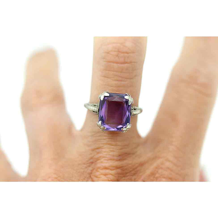 Art Deco 2.50 CTW Emerald Cut Amethyst Vintage Gemstone Engagement Ring