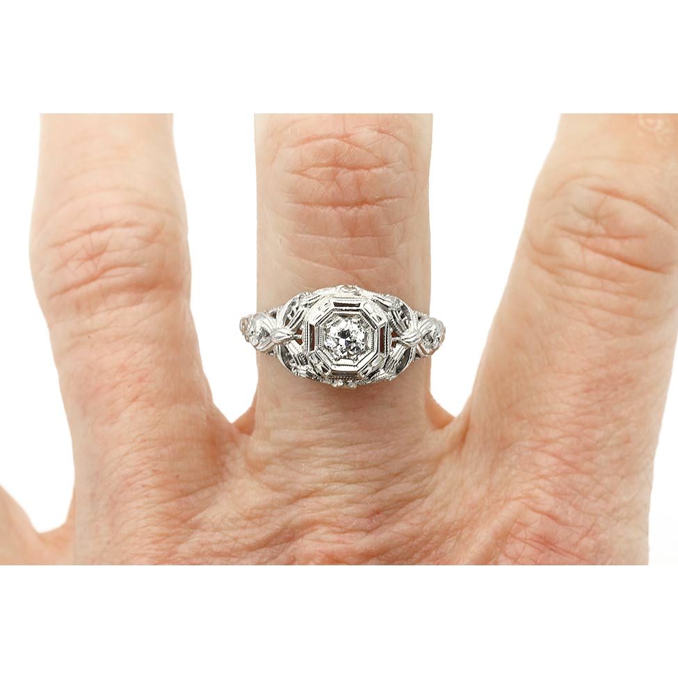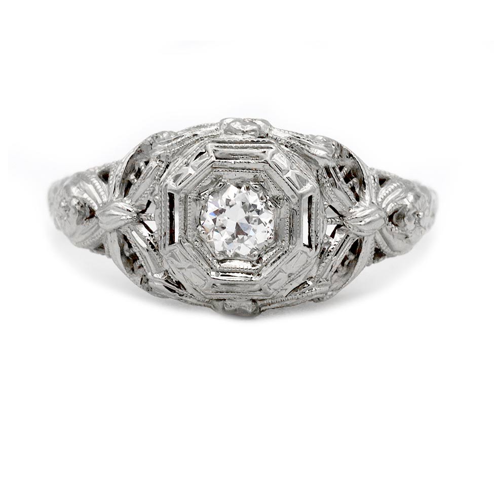 Art Deco .20 CTW Octagonal Old European Cut Diamond Vintage Engagement Ring