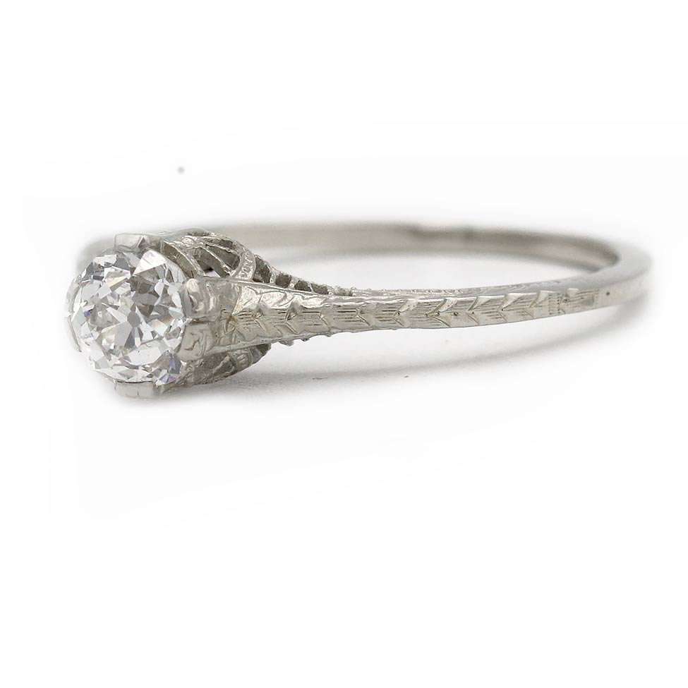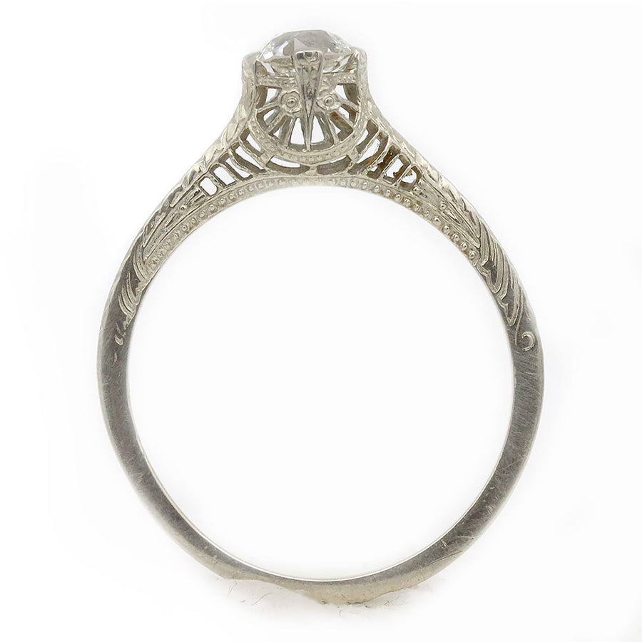 Art Deco .40 CTW Thin Filigree Band Mine Cut Antique Diamond Engagement Ring