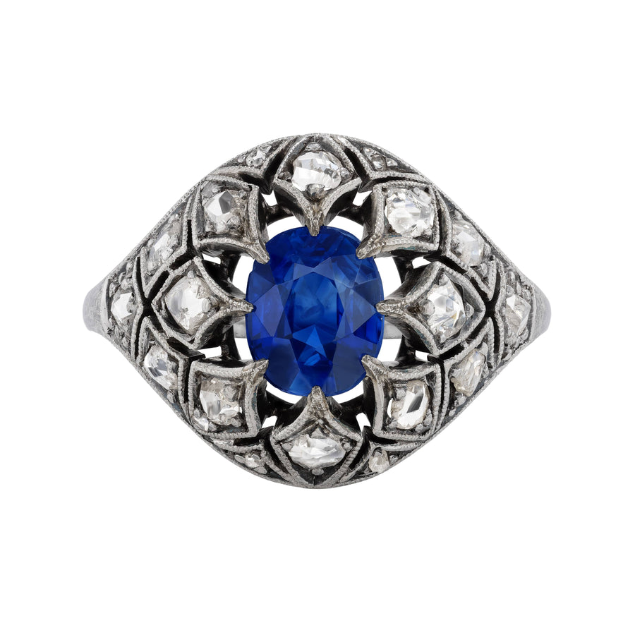 Art Deco 1.50 CTW Sapphire & Rose Cut Diamond Platinum Gemstone Engagement Ring