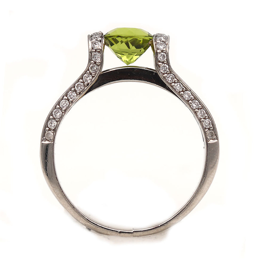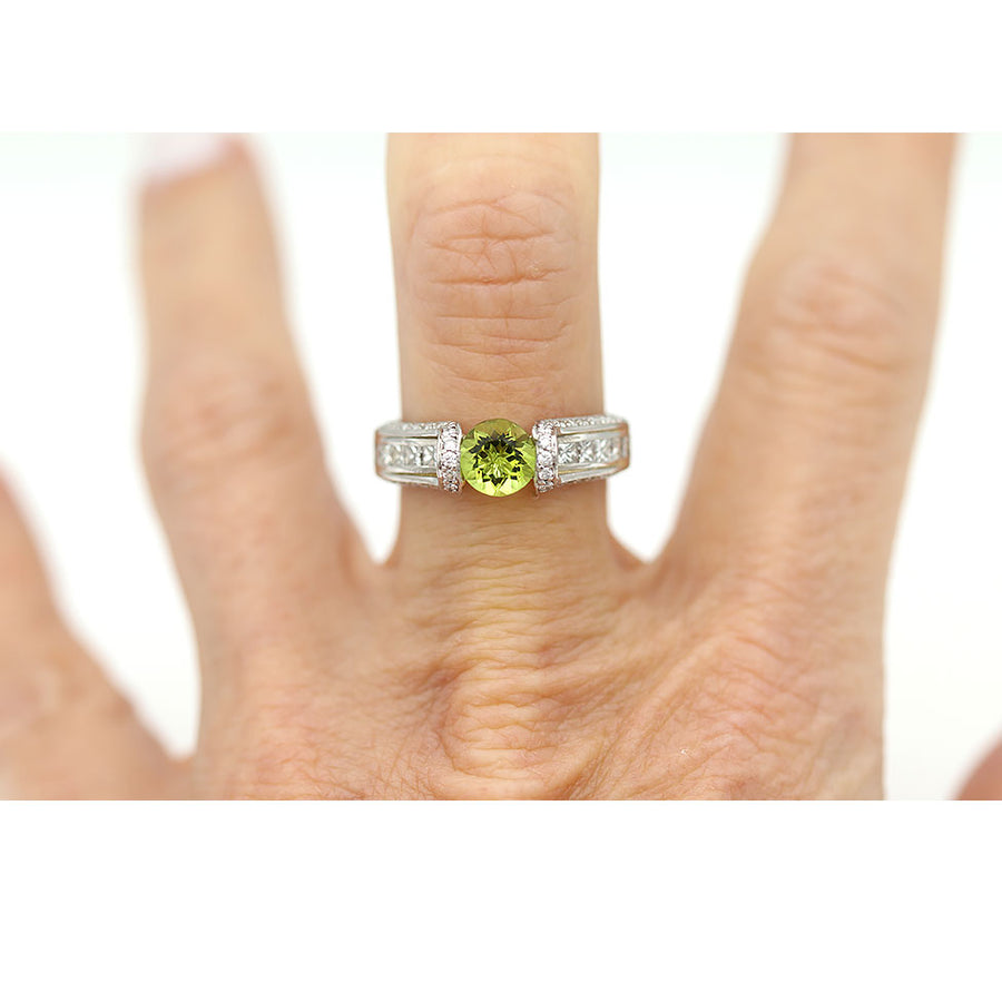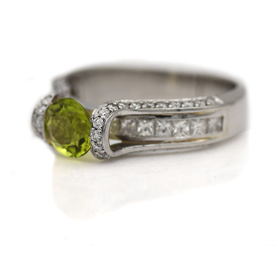 Contemporary 1.75 CTW Peridot Invisible Set Princess Cut Diamond Tension Gemstone Engagement Ring
