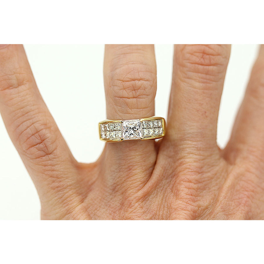 Estate 2.44 CTW Invisible Set Princess Cut Diamond Vintage Engagement Ring in 18K Yellow Gold