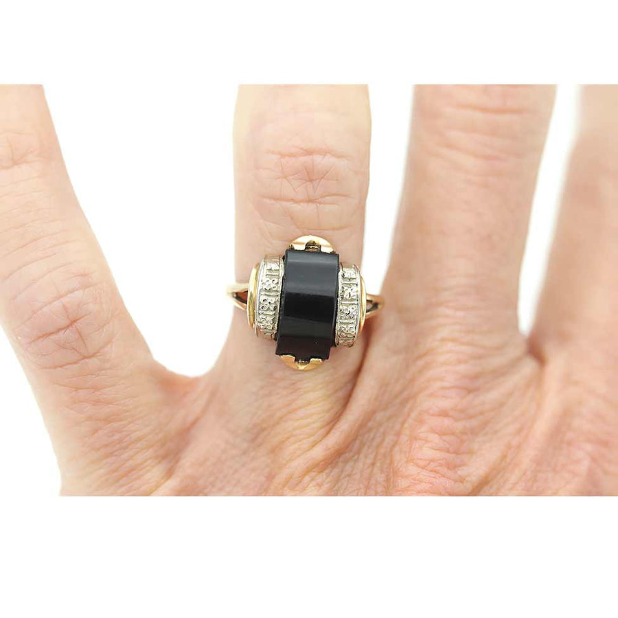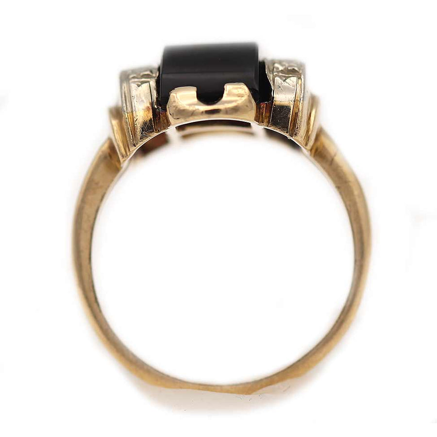Art Deco Black Onyx Engagement Ring | Antique Two-Tone Gold
