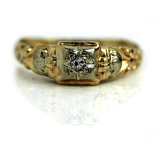 Mid-Century .05 CTW 14K Two Tone Gold Petite Antique Diamond Engagement Ring