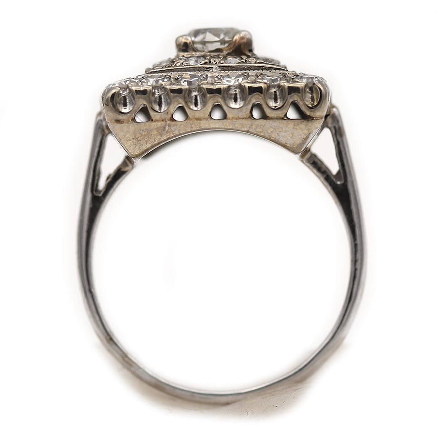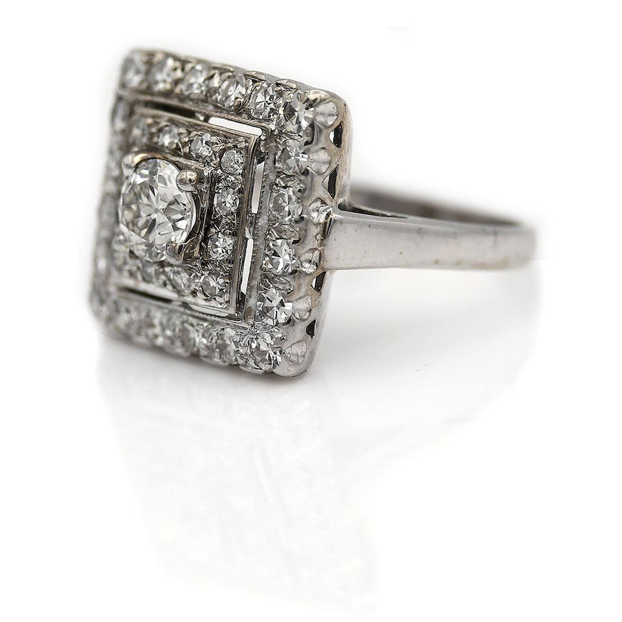 Mid-Century 1.15 CTW Square Halo European Cut Diamond Vintage Cocktail Ring