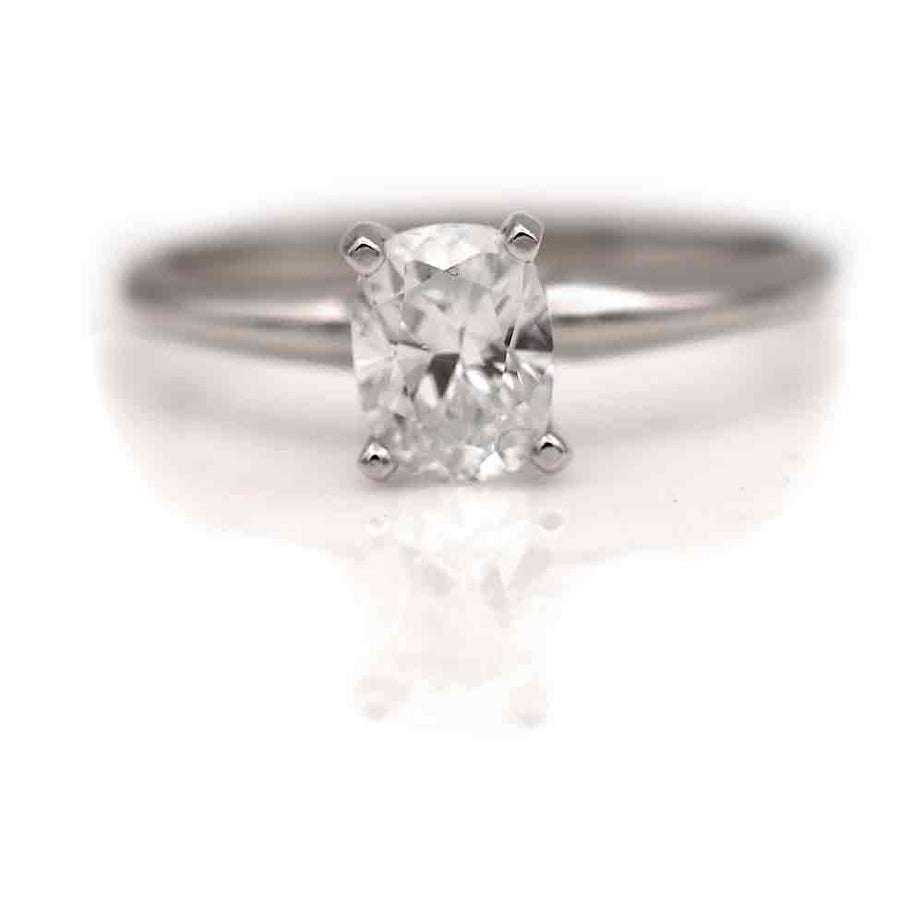 Mid-Century .94 CTW Cushion Cut Diamond Vintage Engagement Ring GIA H/VS2