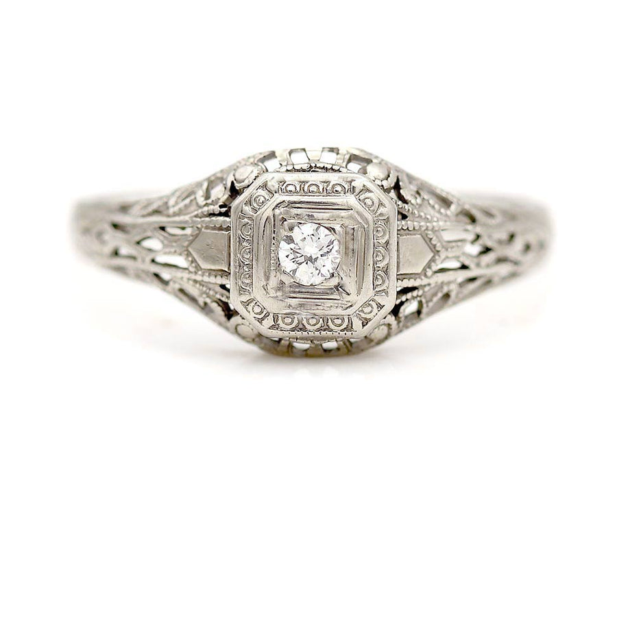 Art Deco Engagement Ring .08 CTW 18 Karat White Gold Filigree Engagement Ring